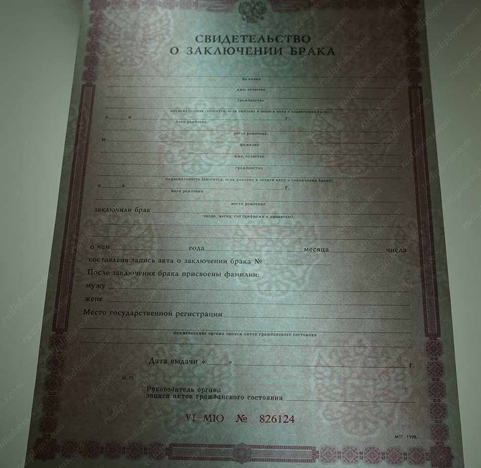 Фото свидетельства о браке