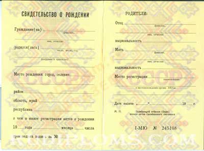 Свидетельство о рождении СССР до 1996 года